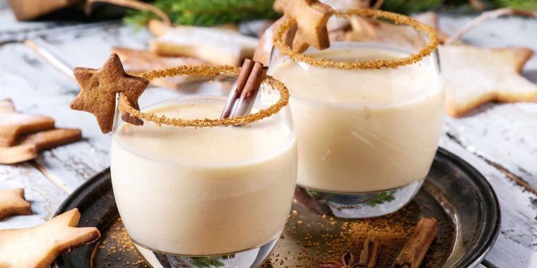 Eggnog is a creamy, seasonal beverage that is usually made with eggs, sugar, milk, and nutmeg. You can give it a boozy kick by adding bourbon or dark rum. Its history dates back to 13th century England where it was invented, however, the actual recipe comes from the 17th century, when eggs, milk, and sherry were a commodity. It was an aristocratic drink that people used to toast health and prosperity.