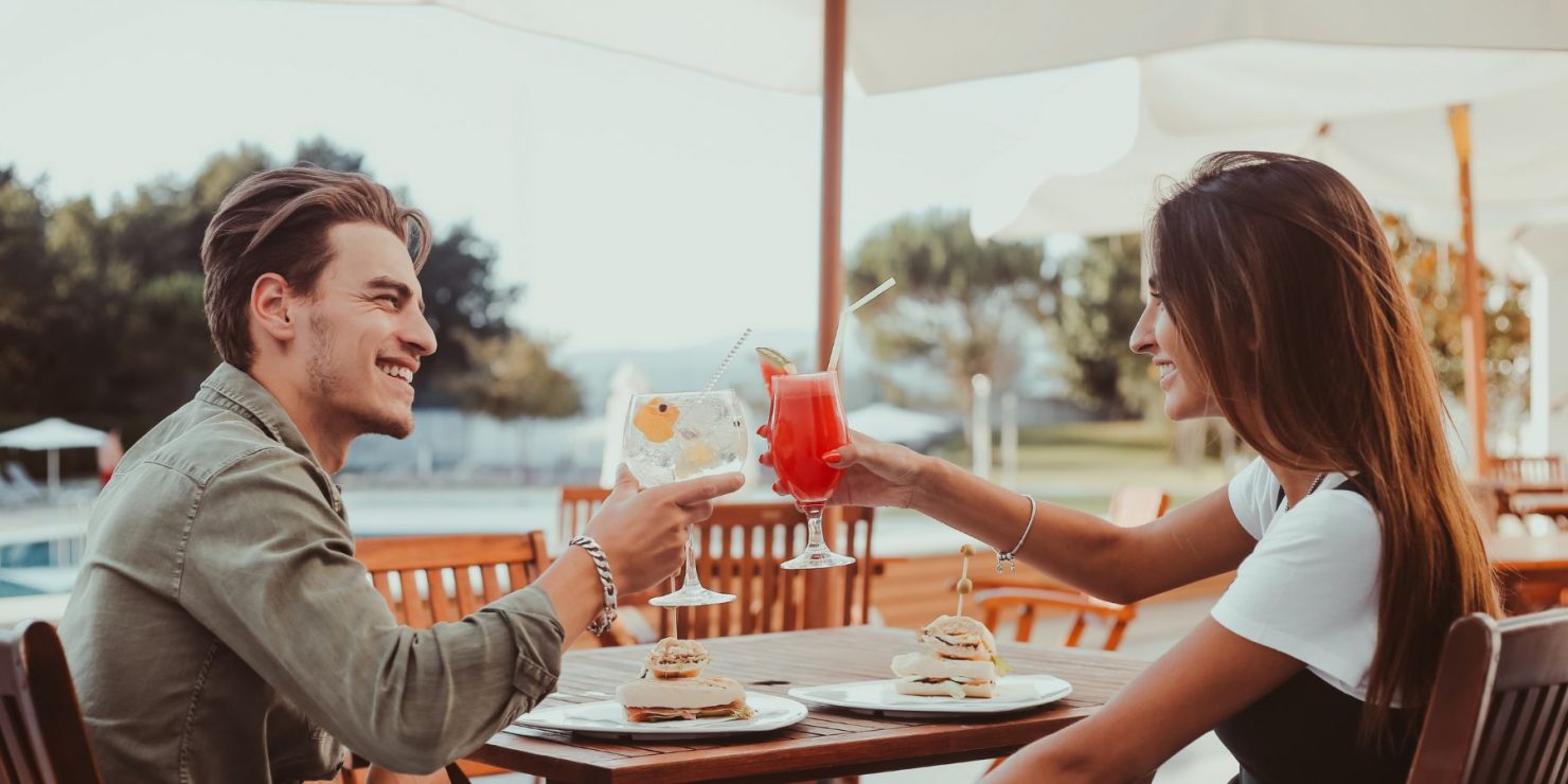 Naturally, we had to throw the OG naughty-but-nice drink in the Valentine’s Day mix! A Sex on the Beach serves all the tropical vibes. The first layer of the drink contains intensely fruity peach schnapps that are combined with orange and pineapple juice. Then, on top of this, the next layer contains SKYY Vodka that is shaken with tart cranberry juice and a kiss of raspberry liqueur.