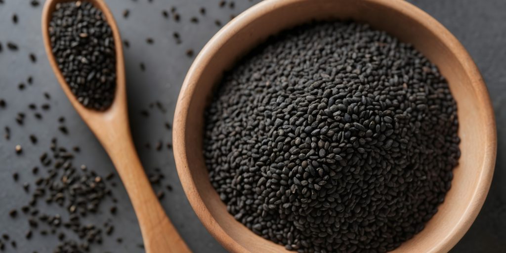 The flavor of black sesame seeds is deeply nutty, warm, and a little earthy, with a roasted edge that lingers in a slow, cozy way. It also has a slight bitterness, like dark chocolate or strong coffee. You might be reminded of tahini, but with a darker, toastier personality.